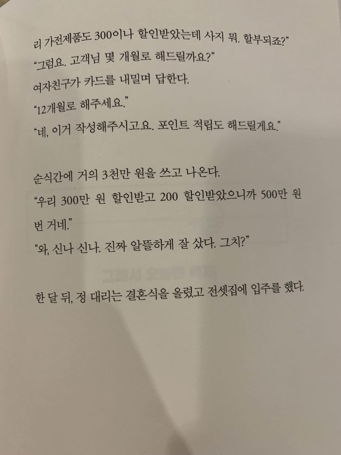 가구랑 가전제품도 좋고 비싼 제품으로 구매를 합니다. 당장 필요는 없지만, 전세대출 상담 하면서 새로 만든 번쩍이는 메탈 신용카드로 일단 구매를 합니다.